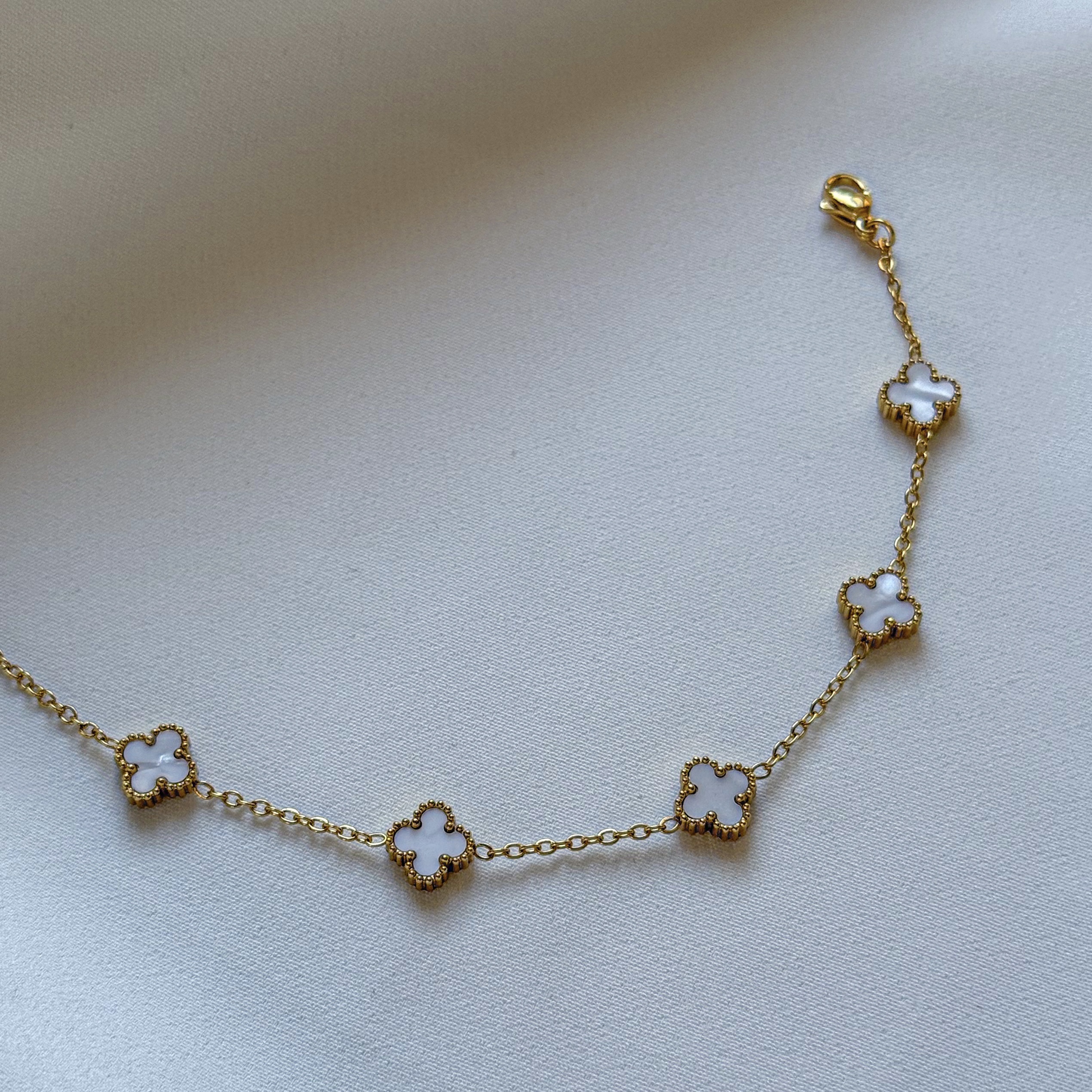 ست ونکلیف پنج گل ظریف سفید - طلایی