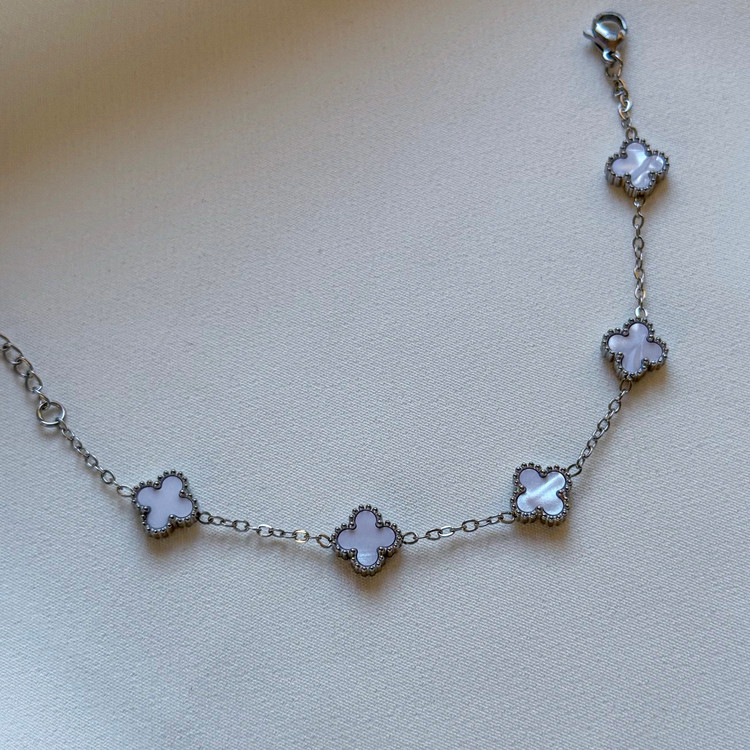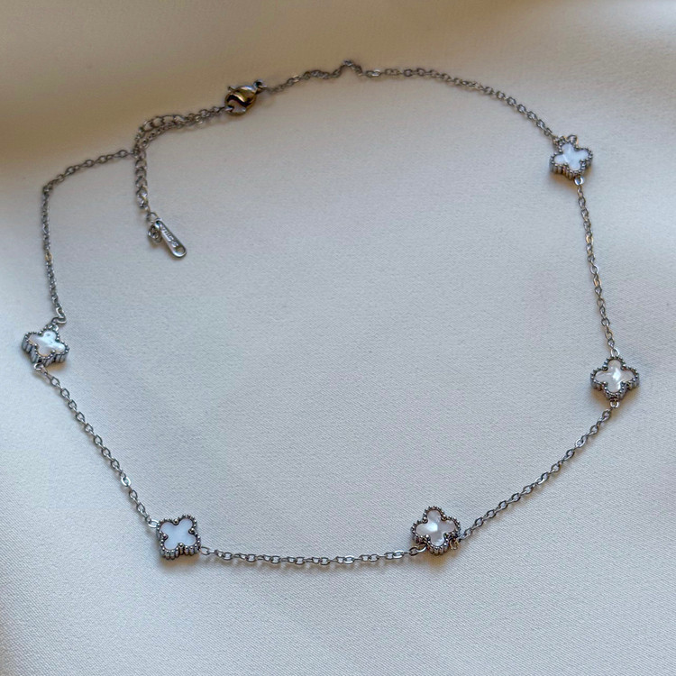 ست ونکلیف پنج گل سفید ظریف- سیلور