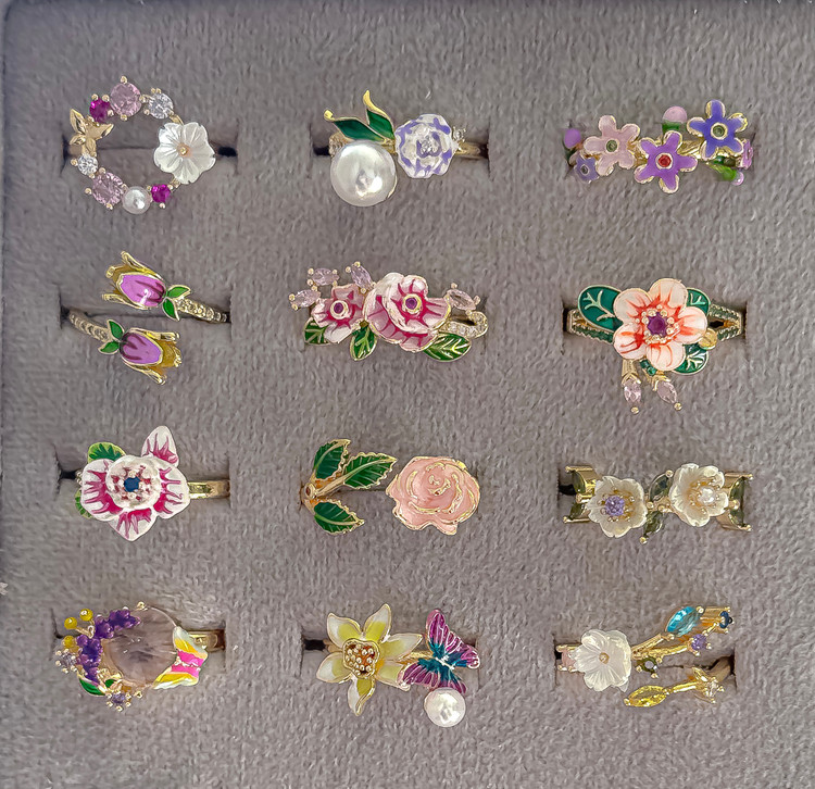 انگشتر میناکاری گل مینیاتوری
