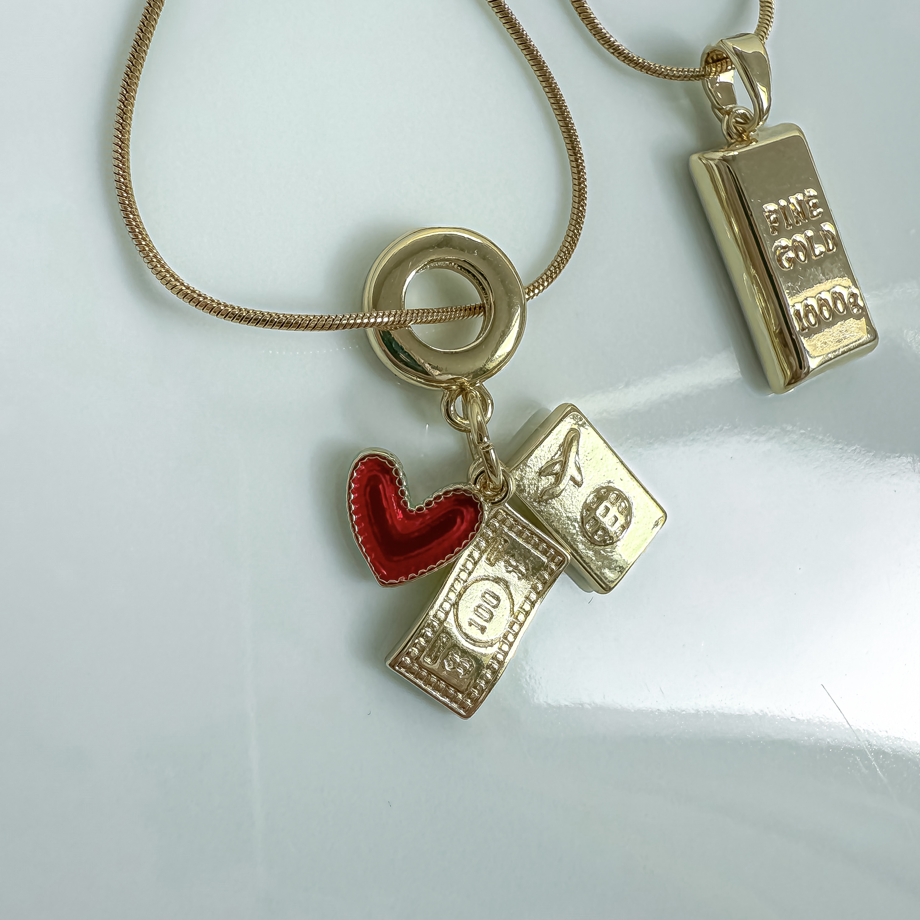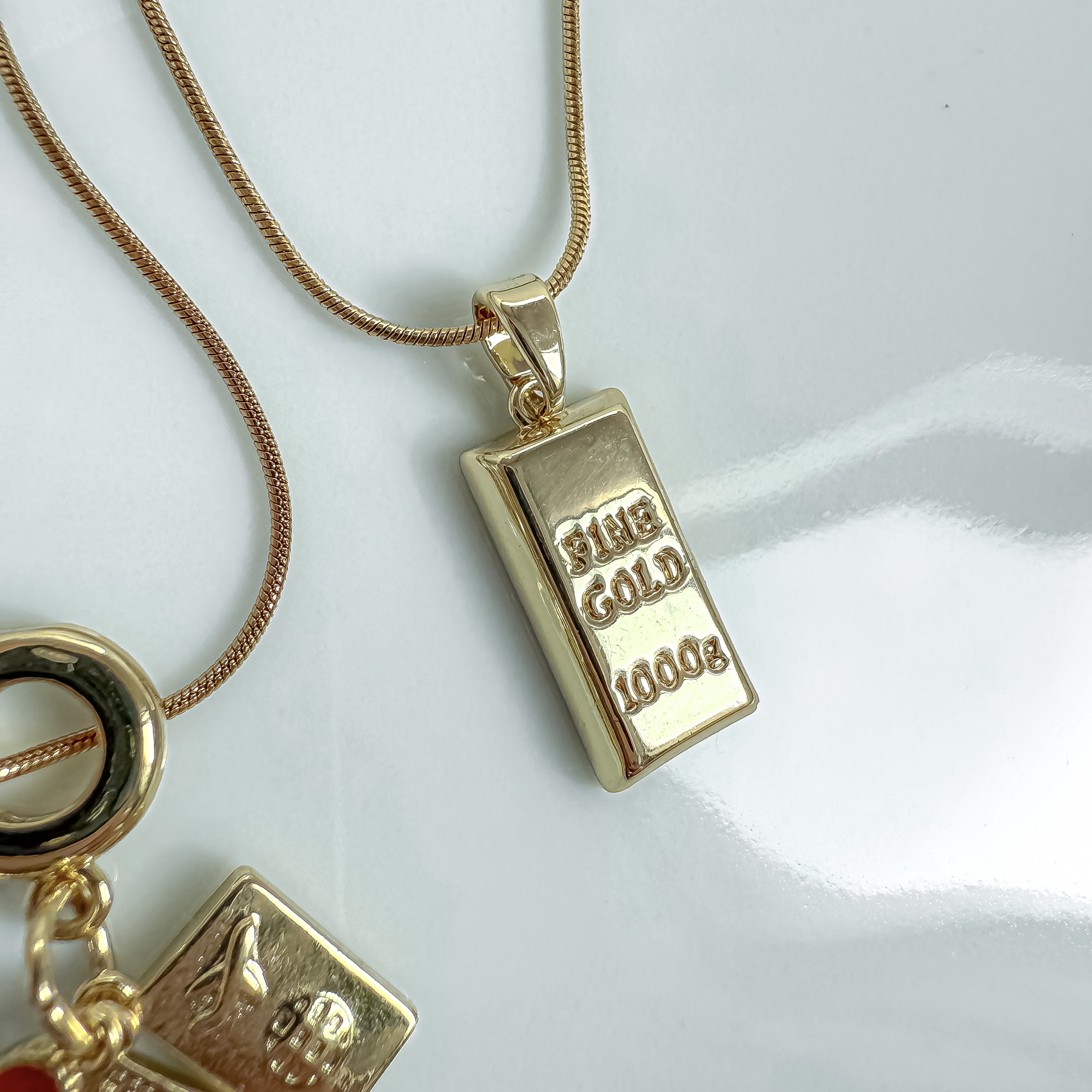 گردنبند طرح طلا شمش و دلار + زنجیر ماری