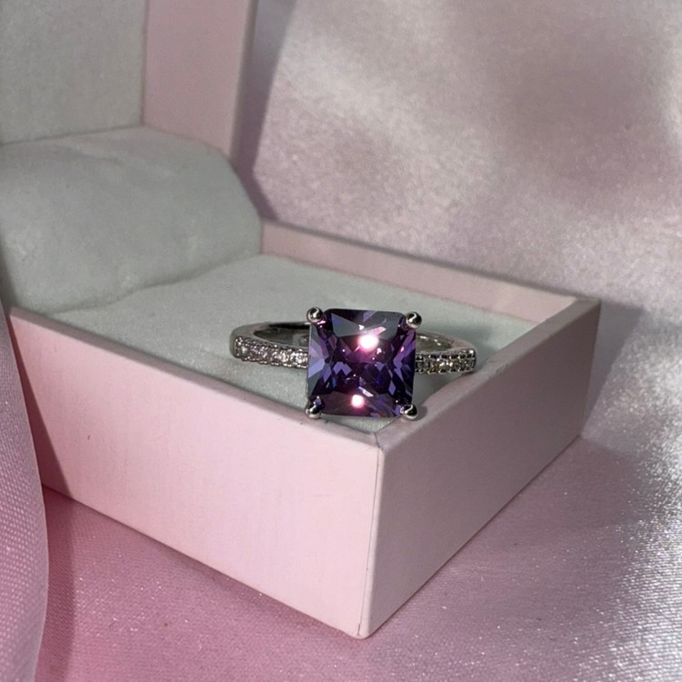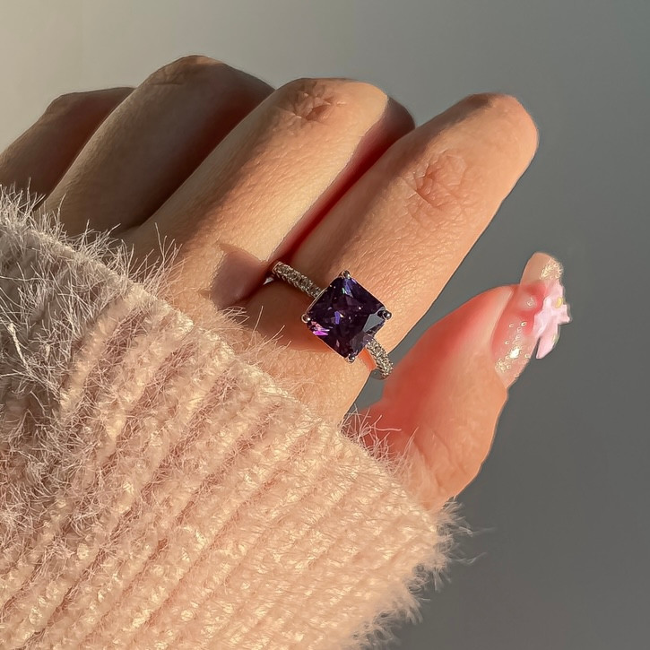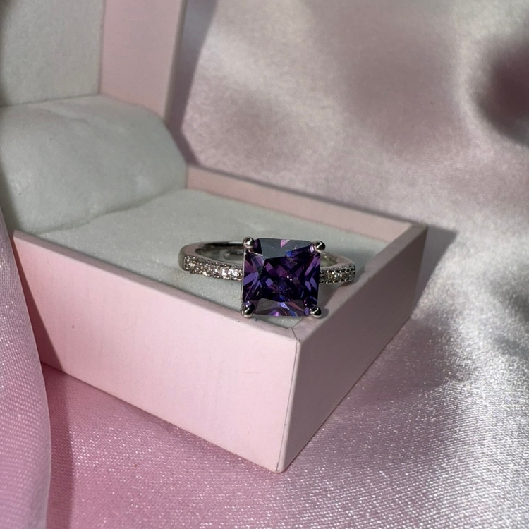 انگشتر بنفش نگین مربعی